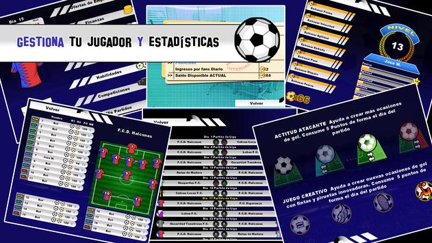 y gestionar tus cuentas propias. Mejora tus estadísticas, gana fans, activa habilidades y actitudes para partidos, busca ofertas de otros clubs, gana trofeos de pichichi o zamora, etc.