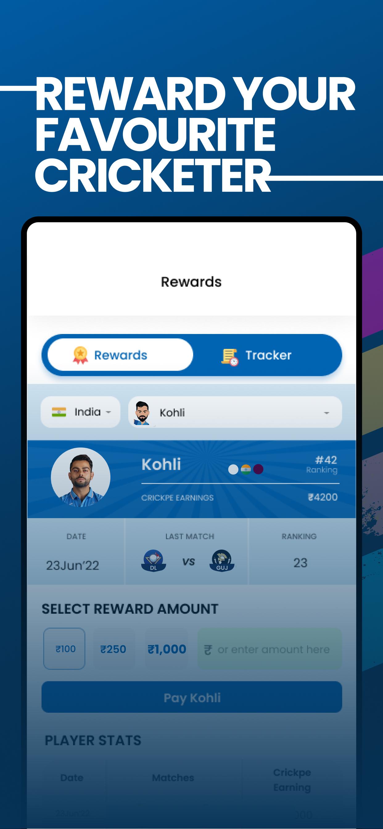 Let your blind love for your favorite cricketer transcend their current playing form. In CrickPe fantasy league app directly shower love on your favorite cricketer through real cash rewards, beyond the fantasy points system.