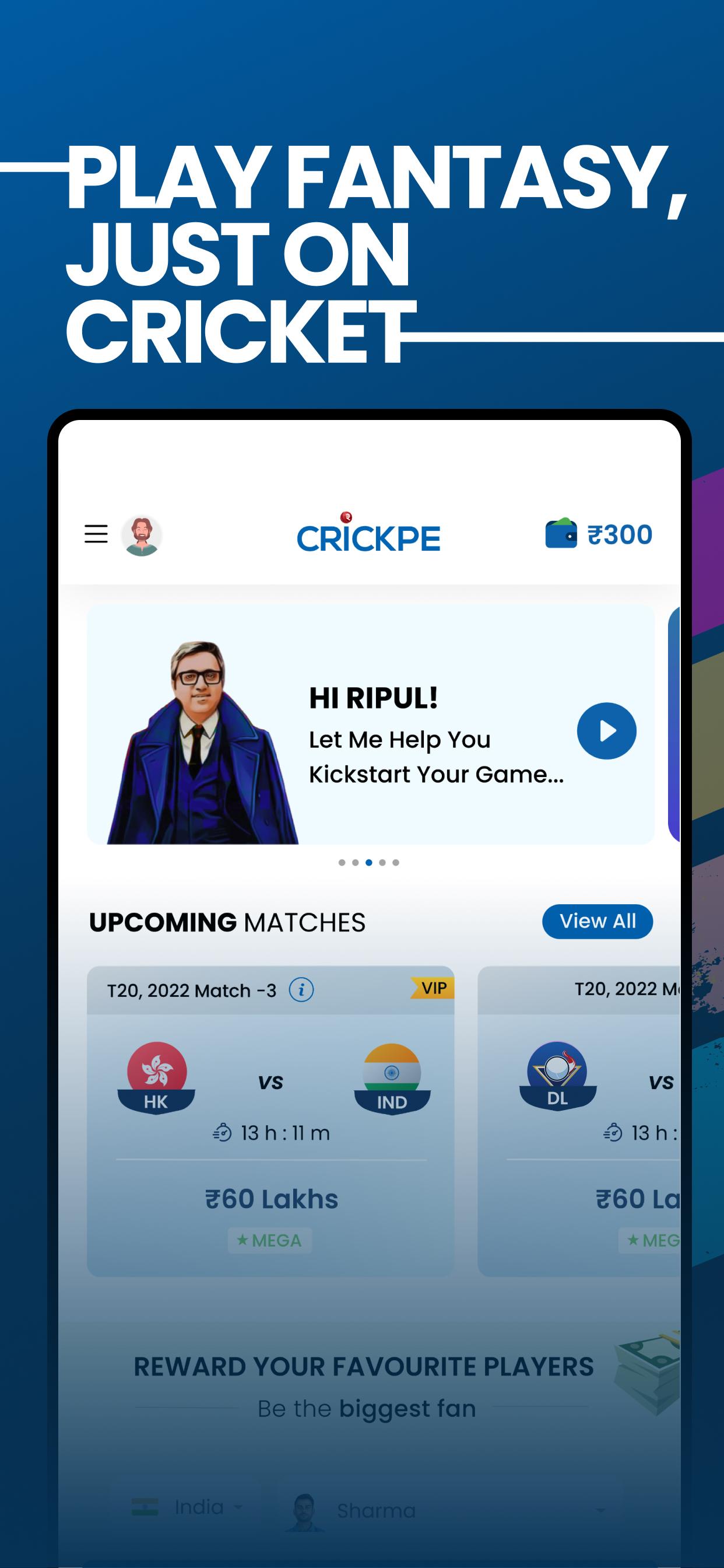 CrickPe fantasy app is a real money game app. All gaming apps are addictive. Please play ‘RESPONSIBLY’. Play ONLY with real money that you can afford. Seek help without hesitation - help@crickpe.com. For more information about Responsible Play, please visit https://crickpe.com/responsible-play