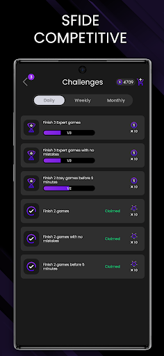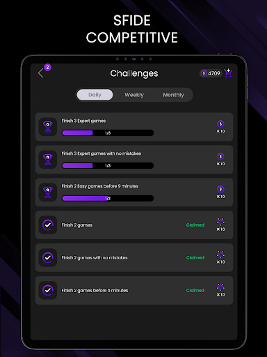 - Sfide giornaliere/settimanali e mensili comuni ai giochi di matematica, giochi di kenken, numpuz gioco , suduko rompicapi , indovinelli , QI giochi , woodoku , blockudoku , giochi intelligenza , number match gioco , nonogram giochi di numeri , giochi mentali , giochi di enigmi , giochi di sudoko , giochi di calcolo , garam gioco , giochi di logica , giochi di concentrazione e giochi di pensiero - Completa le sfide logiche e raccogli i trofei