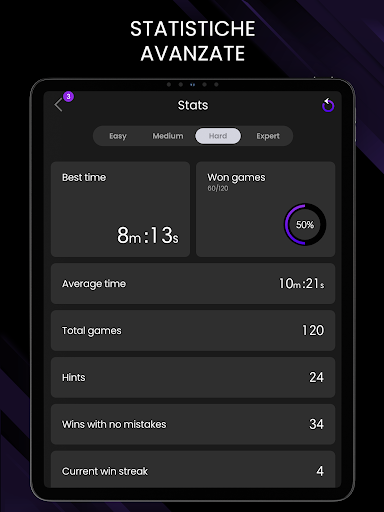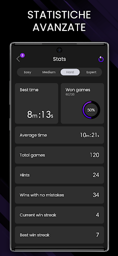 - Statistiche e analisi avanzate per monitorare i vostri progressi per ogni livello di difficoltà del Sudoku enigmi
