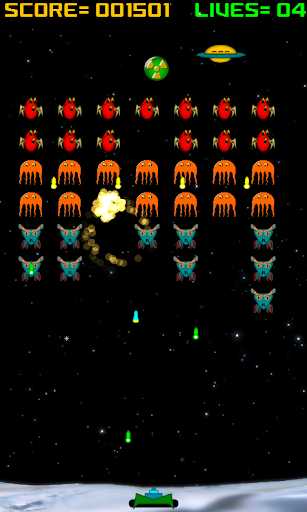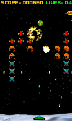 This app is similar to classic space invaders game and contains some new improvements.