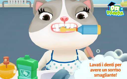 Nel Bagnetto del Dr. Panda devi dare una mano agli originali amici del Dr. Panda a lavarsi, imparando così a prenderti cura della tua igiene personale divertendoti! Partecipa a spassose avventure facendo snorkeling nella vasca da bagno, costruendo barbe di sapone colorato sugli animali o asciugandoli con un phon magico!