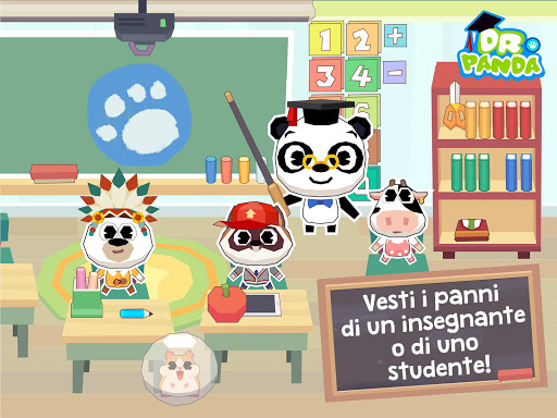 Scopri tutte le classi ne La scuola di Dr. Panda! Crea sculture in creta nella classe di arte, coltiva le piante in giardino e prenditi cura di Hambo il criceto, oppure insegna matematica... ci sono centinaia modi diversi di giocare!