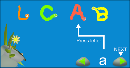 I bambini dovranno pigiare sui bottoni a forma di verme e, se la scelta della lettera sarà corretta, un pesce verrà a mangiare i vermi altrimenti si allontanerà.
