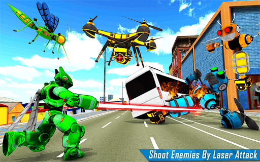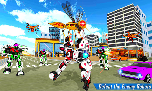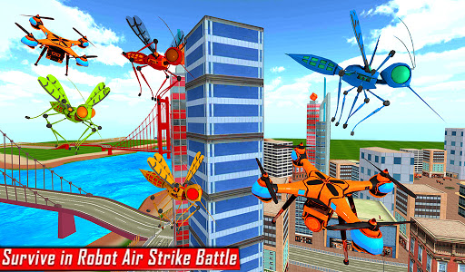 Flying bee simulator transforming into futuristic robotic Battle to take down the super robot battle and defend grand city from evil robots in flying wasp robot transforming games. When you will once enter in this as flying robot,You have Chance to Fight with Futuristic Robot Mech Warrior.So Get Ready to Enjoy the Future robot transformation games with multi robot transform techniques can give you a new experience of robot bee flying games.Flying mosquito transform robot battle is the game of grand city of gangsters! Flying mosquito transform robot battle is to rescue city in futuristic robot games. In this mosquito robot transformation: flying robot games is a robot transform sim with mech future robot flying simulator to fight against the enemy mosquito transform into future robot as new invention in the flying robot games. Play mosquito robot transformation: flying robot games and win the robot battle to rescue people from evil robot. Exploit your flying robot fighting skills to save innocent people of city from evil forces in futuristic robot transforming games. Bet ready for transforming robot for city survival in robot war games.