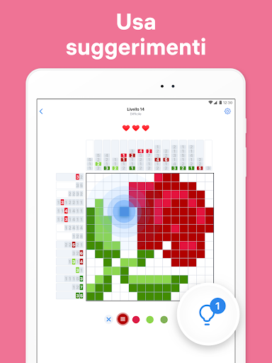 I nonogram, anche noti come griddler, hanjie, picross, pictocross e kakuro, sono un tipo di puzzle giapponese con una griglia che nasconde delle immagini. Questo gioco ti farà scoprire la versione multicolore.