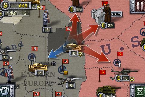 Durante il gioco è necessario operare e distribuire ragionevolmente le tre truppe di base che includono soldati, carri armati e artiglieria. (La truppa di soldato con alti rendimenti ma attacco generale, truppa di serbatoio con attacco alto e continuare l'azione quando si distrugge i nemici, l'artiglieria La truppa attacca la truppa di soldato e la truppa del carro armato mentre non possono colpire), giudicare correttamente la situazione attuale in qualsiasi momento per l'AI è eccezionale. Gli attributi delle braccia sono diversi da ogni paese. Ad esempio, il serbatoio della Germania è più potente ma con alto prezzo, il cannone dell'Unione Sovietica è eccellente, la Marina della Gran Bretagna è la migliore.