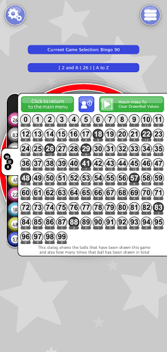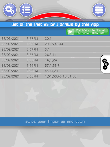 Mostra anche gli ultimi 25 pareti palla che l'app ha fatto l'app, così come le palle attualmente disegnate e quanto spesso quella palla è stata disegnata prima.