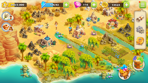 👣 ESPLORA: Territori selvaggi dell'antico Egitto ti aspettano! Sarai in grado di trovare fantastici paesaggi per costruire la tua città forte e prospera e ci sarà sempre qualcos'altro dietro le rocce in questo gioco di simulazione di fattoria!