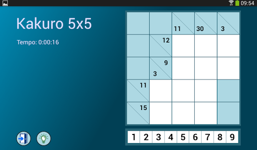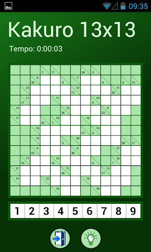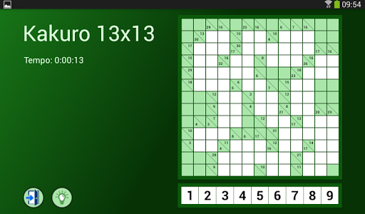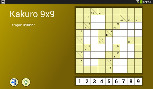 Il Kakuro è simile alle Parole Crociate, ma invece delle lettere il tabellone è riempito con i numeri (da 1 a 9).