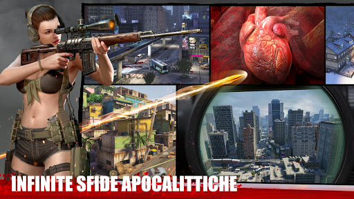 Dovrai lanciarti all'assalto, sparare e uccidere per sfuggire a imboscate nella neve, nei deserti e nelle caverne durante l'invasione zombie. Ti ritroverai in cima a un grattacielo con nient'altro che un fucile da cecchino. Dovrai eliminarli con un fucile da tiratore scelto nel mezzo di un ponte. La sfida sarà alle stelle nelle fasi dell'evento e a volte gareggerai con altri sopravvissuti in una sparatoria: chi perde è morto. Ci sono anche ospedali, isole e altro ancora che aspettano un cecchino dal grilletto facile che li esplori. Guadagnati la sopravvivenza a suon di uccisioni FPS!