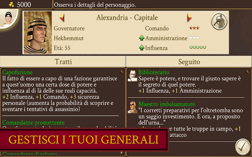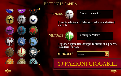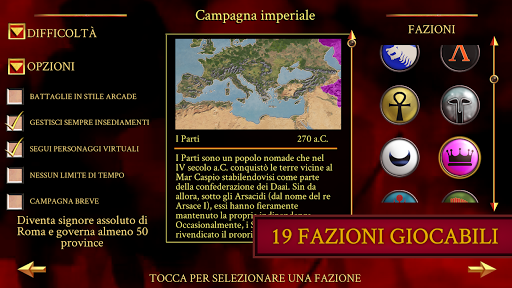 Vivi una storica campagna di conquista dell'Europa, del Nord Africa e dell'Est del Mediterraneo. Guida una delle 19 straordinarie fazioni, tra cui Egitto, Galli, Britanni, Città greche, Macedonia e Iberia.