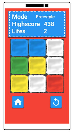Freestyle: No time limit! Reach for the big highscore. Tap as many colored tiles as possible, they increase your highscore count in a different way(Blue 1, Green 2, Yellow 10, Purple 25)! But watch out for the red tiles, they decrease your lifes by 1. Once you reach 0 lifes, the game is over!
