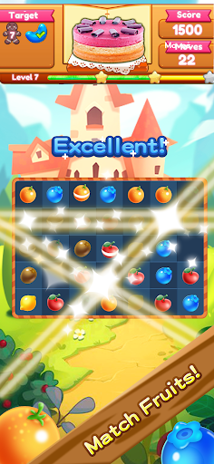 -a partita match-3 Combinazione di vari frutti e oggetti di scena.