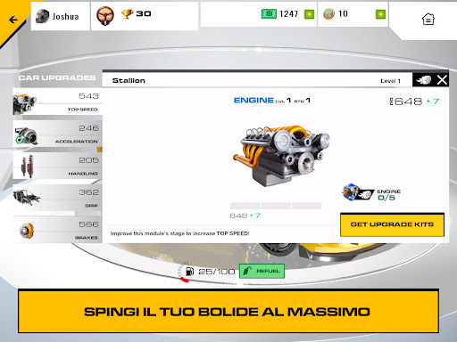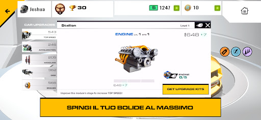 Personalizza il tuo garage con progetti ad hoc. Modifica le auto per potenziare ogni minima caratteristica: motore, trasmissione, telaio, sospensione e freni.