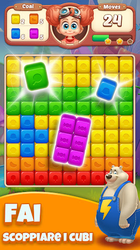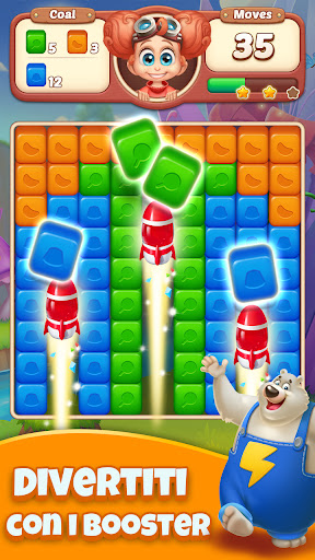 Tocca per schiacciare 2 o più cubi adiacenti dello stesso colore. Crea fantastiche combo per ottenere punteggi più alti e guadagnare ricompense extra. Usa potenti potenziamenti per aiutarti a risolvere enigmi impegnativi e superare i livelli nelle più grandi avventure esplosive!