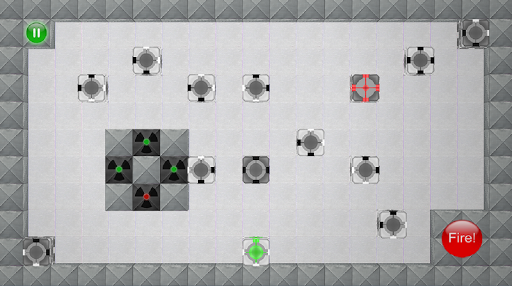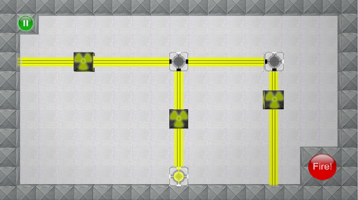 After you think you placed all object correct in the puzzle, you can press the Fire! Button, this will shoot Lasers from the Laser Shooter that will be guided by the objects according to the way you placed them.