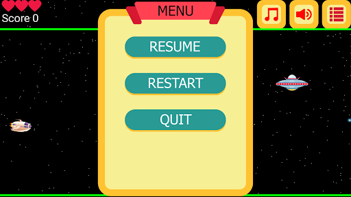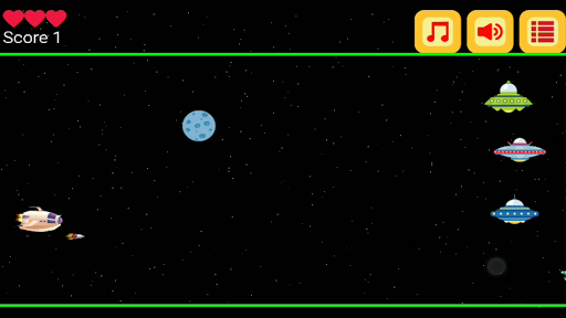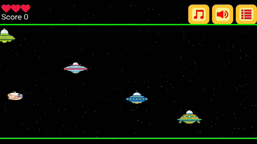 When your touch is released, the spaceship will fall down. Try to avoid Aliens, Meteorites and Green Lines collisions.