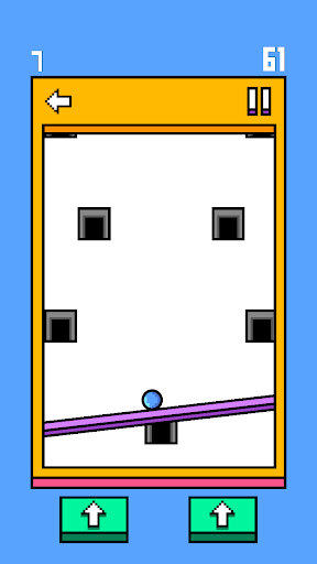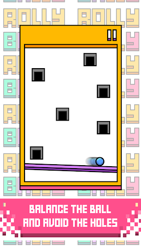 Based on a classic arcade game, Rolly Bally brings you back to the love of old school games. Just press the buttons to tilt the board and let physics do the rest as the ball rolls down to either side. Holes are coming from the ceiling and you have to use your twitch reflexes to avoid your ball from falling into those holes.