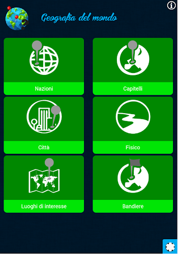 Questa applicazione contiene tutte le NAZIONI del mondo; con i diversi giochi, potrai imparare, per esempio, a localizzarle sulla mappa.