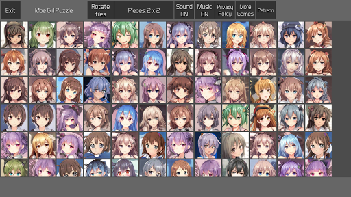 A swap-tile and rotate-tile puzzle with 250 faces of kawaii anime girl characters.