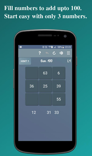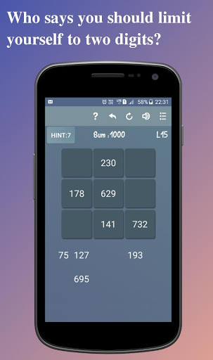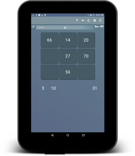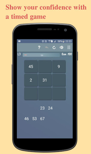 There are timed games for those of you who like a challenge. If you feel adding to 100 is too easy, in level 8 and higher, the sum will be different each time. In more advanced levels, sum will be 1000.