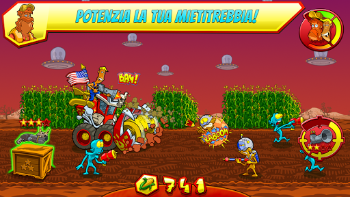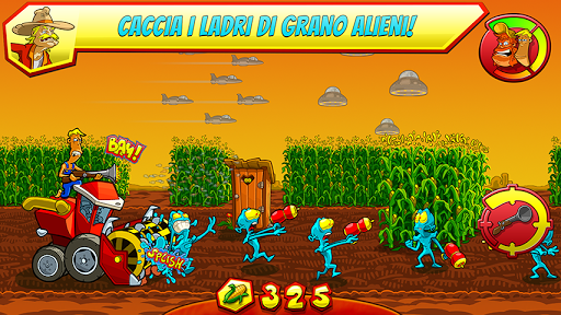 Sono stati avvistati gli UFO nella fattoria del vecchio Pops! Usa un vastissimo arsenale di armi incredibili per impedire agli alieni di rubare il raccolto. Salta sulla tua mietitrebbia e falcia i piccoli invasori blu fino all’ultimo! Né astronavi armate, né pericolosi ostacoli ti impediranno di diventare il più grande cacciatore di alieni del mondo! Evita i raggi trattori alieni e affronta i famelici troll marziani per la difesa della fattoria del vecchio Pops!