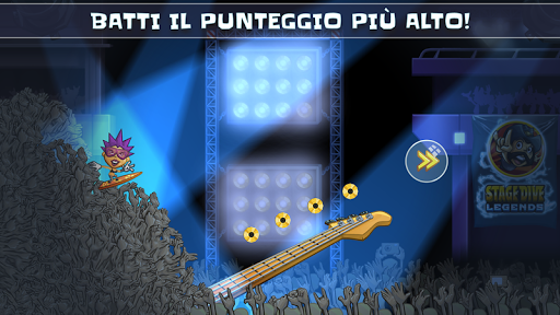 Sfascia la tua chitarra, prendi la rincorsa e salta sulla folla esultante! Surfa lungo tutta la sala e lasciati trasportare dai tuoi fan scatenati. Metti in scena acrobazie pazzesche, colleziona monete d’oro e utilizza fantastici power-up per intrattenere il pubblico! Evita gli oggetti lanciati dal pubblico come bombe, banane e burger.