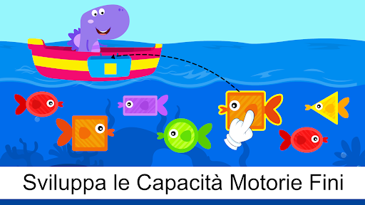 Il tuo piccolo può giocare a una serie di giochi eduativi con Dinos. I bambini dai 2 ai 5 anni possono imparare a identificare, tracciare e differenziare tra forme e colori.