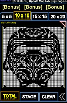 L'obiettivo di Picross è quello di scoprire la posizione dei balck o blocchi colorati Uso dei suggerimenti sul codice nella griglia bianca.