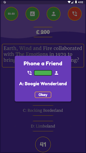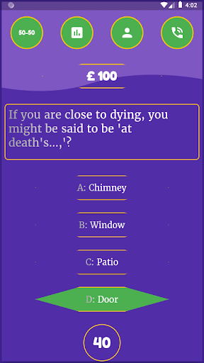 It incorporates interesting design, original and mind-boggling questions, animation, and sound effects which gives an immersive experience to the user. The player gets to develop skills that a "Who wants to be a Millionaire" aspirant must have.
