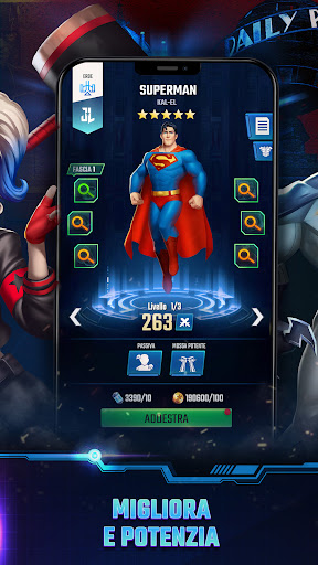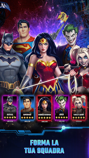 Potenzia la tua squadra e stringi alleanze nell'universo DC. Collabora per combattere il male e sconfiggi boss e nemici per ottenere fantastiche ricompense negli eventi a tempo. Tutti gli eroi e i cattivi della DC Comics, tra cui Batman, Superman, Blue Beetle, Wonder Woman, Joker, Aquaman e Flash, possono essere potenziati e diventare ancora più forti.