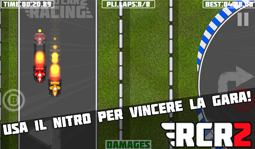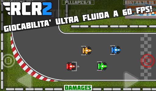 Scegli la vettura che preferisci, ce ne sono di quattro colori differenti, rossa, blu, verde e gialla… cerca durante la gara di superare le altre vetture, arriva sempre per primo al traguardo, scegli la traiettoria perfetta, evita gli ostacoli come le macchie d'olio, cordoli, balle di fieno etc.. raccogli tutti i potenziamenti e vinci la gara! tutto questo per diventare il nuovo campione del mondo di RCR2!
