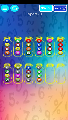 Welcome to the color Symbols sort game 2022 & multiple Symbols Sorting game is a puzzle and fun game.In ball Symbols sorting game contain on Different game mode like beginner,advance,master,expert etc. The Symbols ball sorting game contain the Different tubes and in each tube contain random color symbols and we play and tap the similar symbols in same tube until all the similer symbols are together in the same tube. This symbol color game is fun and easy to learn but difficult to expert.The purpose of this game to improve the capability and skills of children or kids.Symbols sorting puzzle game is a challenges for kids,if you complete the game you become a master and genius.In mater Symbols sort you stack the same symbols in same tube and another symbols stack to another tube and up so on.