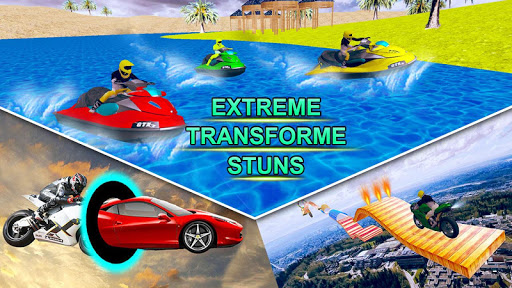 Play the original car conversion in a bike as well water boat Including multiple other vehicles game with the twist of multiple transforming fun as well as addictive 3d environment having sky stunts, Beautiful City area, and wonderful beach. Enter vehicle transform dirt race and switch to multi conversions stunt game with mega Multi ramps, each checkpoint of transform race game will bring wonder for the player.