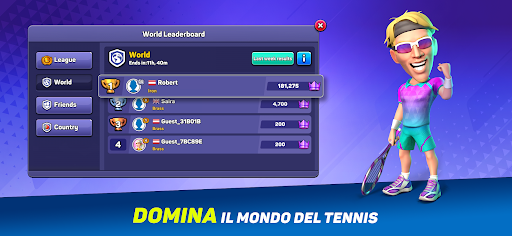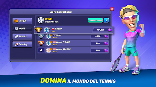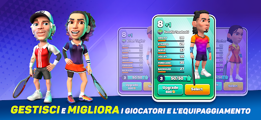 In Mini Tennis potrai vincere giocatori, da quelli comuni a quelli epici, e migliorarli per trasformarli negli avversari più temibili su qualsiasi campo. Non solo potrai costruire il tuo giocatore, ma sarai anche in grado di personalizzarlo completamente con più di 100 opzioni personalizzabili da: