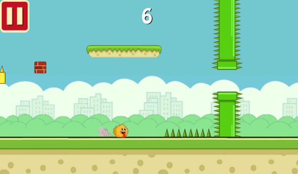 Você faz o seu monstro pular, tocando na tela para fazer o seu monstro pular, mais cuidados com os obstáculos e espinhos, ou você vai bater e game over