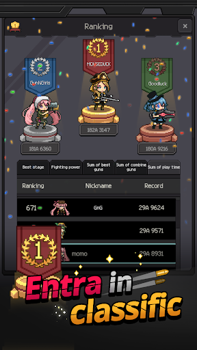 "Pixel idle game militare Gun and Girls: Gunner Maker, 2021. Il rinomato pixel-master dello studio Mouseduck è ora disponibile