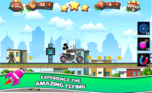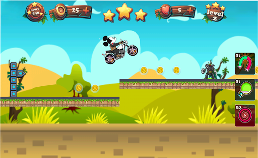 Questo super rider Mickey Motorcycle è un divertente gioco di rush gratuito, scarica questo gioco di avventura e goditi una corsa infinita della giungla.Devi raggiungere la destinazione e superare questi ostacoli e raccogliere più monete.Per renderlo e sbloccare livelli .. Questo gioco progettato con interessante gameplay e bellissimi livelli di souris.Tu e Minni lo amerà sicuramente!