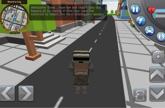 Grab your gun and be the agent who stops the criminals. In Blocky Police San Andreas City you can unlock different kind of police cars and a special one, an armored swat van.