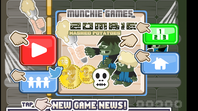 Try to keep the horde of Zombies back by pummeling them with tons of mashed potatoes! That's right..mashed potatoes stop them! But..only for a second before they become the walking dead again! Keep throwing spuds fast and try to do it evenly! If your real good you can win 3 possible zombie coin achievements! the 750 coin is very hard to win..can you do it? If you like to battle against the walking dead, in a brand new quick Zombie attack game..and you like Mashed Potatoes..this is the game for you! Watch for special achievements for Halloween!