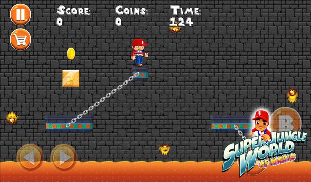 Jungle World of Mario is a journey of a brave boy. He needs to escape from the dangerous jungle with many traps and beasts. Find the right items to make mario able to use his hidden power and weapon.