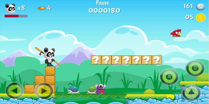 1. Tap the screen buttons to make little panda hero to jump & run.