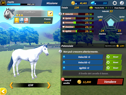 Fai crescere i tuoi cavalli per vincere nelle gare.