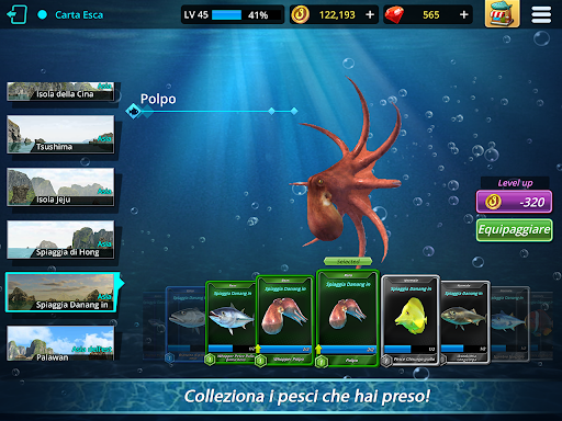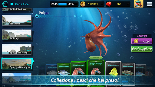Nuovi tipi di pesci saranno automaticamente registrati nel tuo diario di pesca e potrai ottenere ricompense.