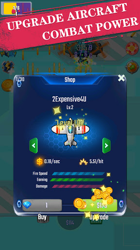 Combina due combattenti identici in un combattente più avanzato, sconfiggi gli aeromobili nemici attaccanti, ottenere più bottino e aggiornare il potere e il livello del combattente.