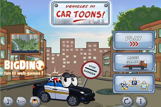 Car Toons Vehicles 3 is the third sequel to the funny, physics-based car puzzle game. Your object is to start and stop engines of several rescue cars to make them park in or destroy enemy vehicles. Much fun!