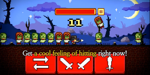 Defeat zombies by pressing the right button with quick judgment