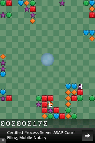 This a new variant in the action puzzle genre. Blocks appear in the center of the play field from a pulsating bubble. Drag the blocks around whenever you wish and clear them via match-3 or forming a boundary on the edges. Gravity is oriented outwards instead of downwards, unlike many other similar games. The effect of gravity only appears when the blocks are cleared.
